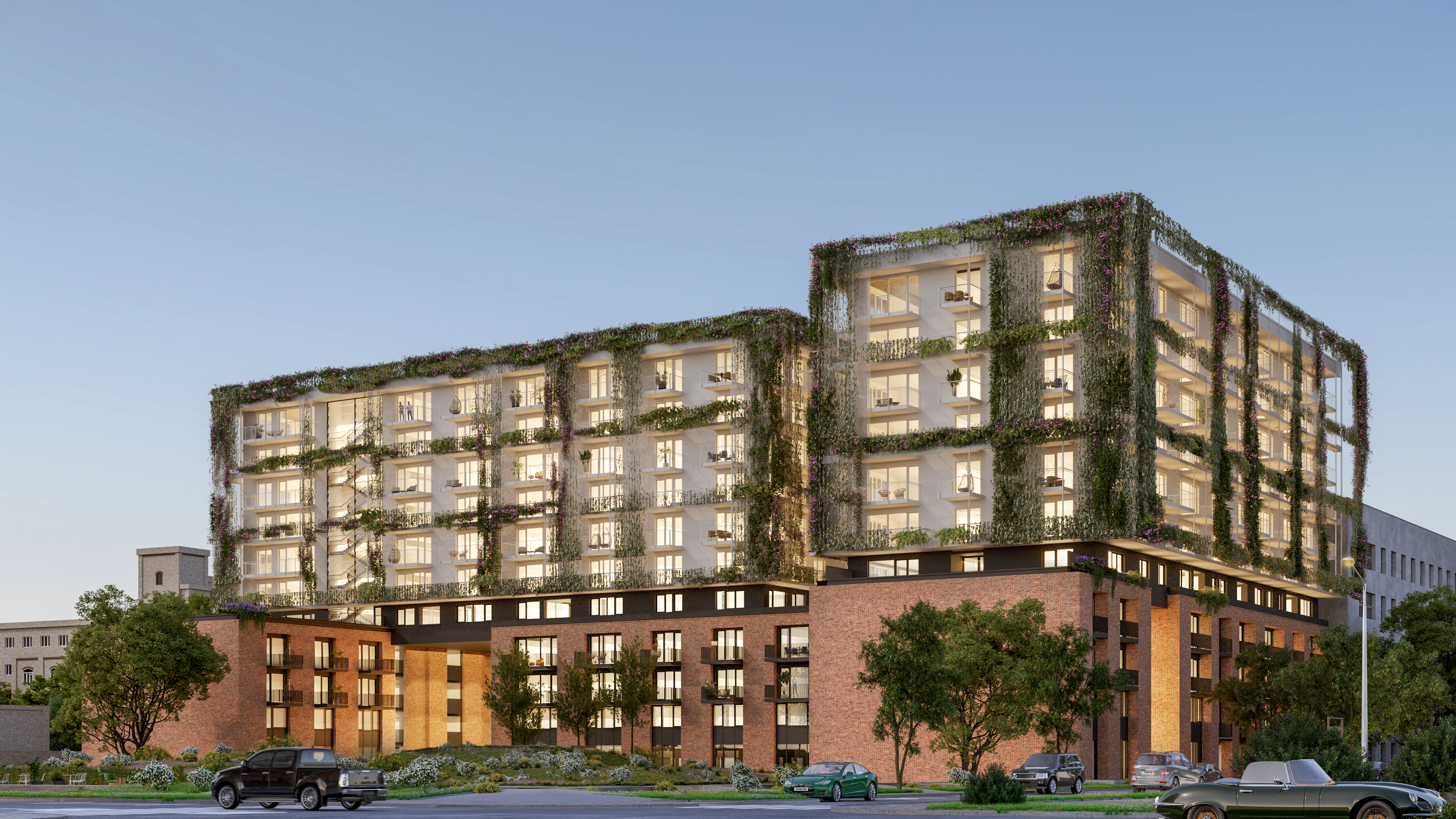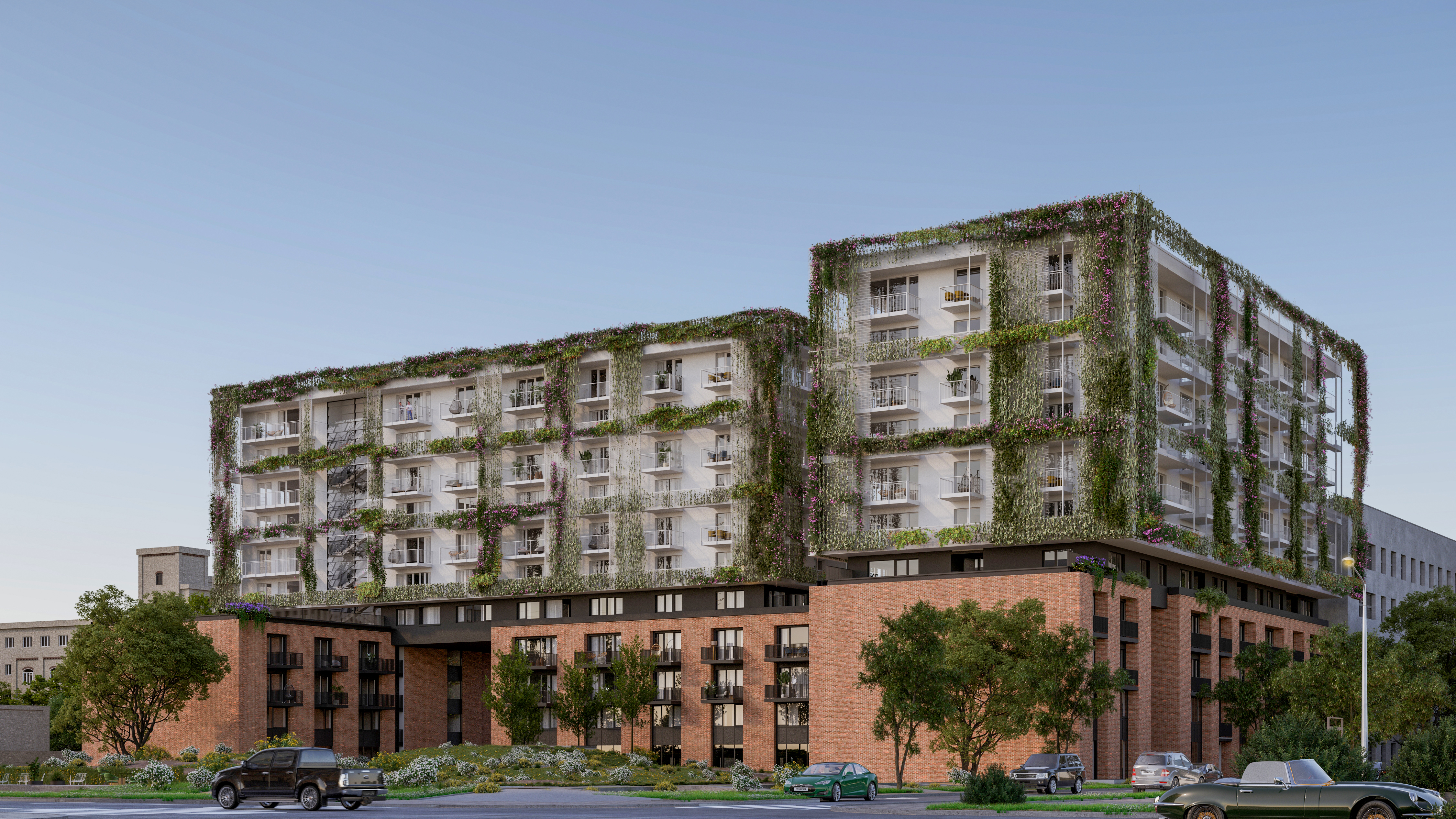 Metrodom Green is situated in Budapest’s Millennium City Centre, in the 9th district at the intersection of Vaskapu and Vágóhíd streets, near the National Theatre and the Palace of Arts. This residential complex features 516 premium apartments in a range of sizes and offers an array of community services. Distinguished by its lush green facades and eco-friendly roofs, Metrodom Green is more than just visually green: it incorporates environmentally conscious, energy-efficient solutions to significantly reduce energy costs and minimize its ecological footprint.
