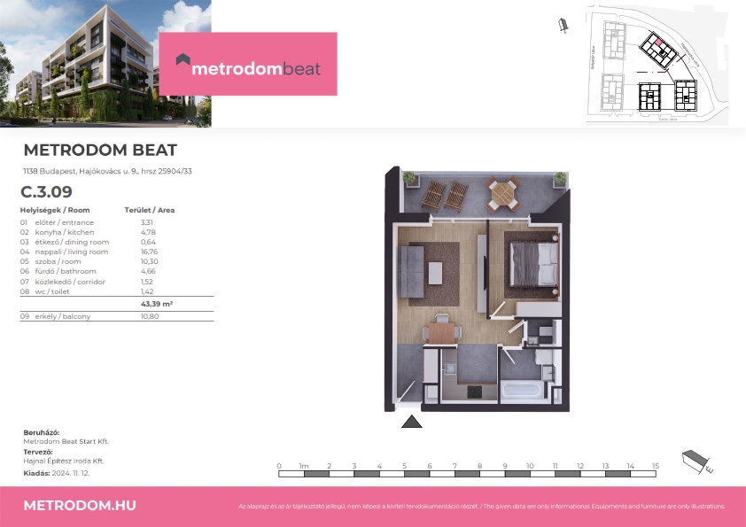 43.39 m2 / 2 szoba